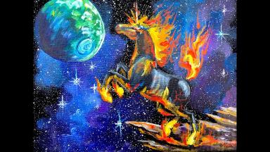 Beginner Acrylic Painting Tutorial Galaxy Fire Unicorn Step By